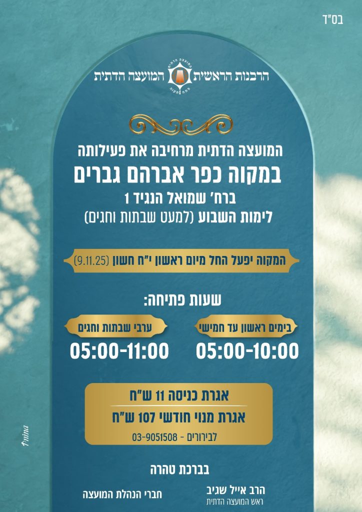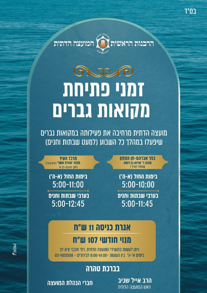 החל מיום ראשון הקרוב המקווה יהיה פתוח בכל ימות השבוע