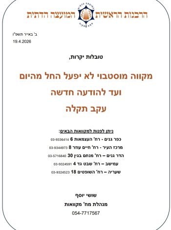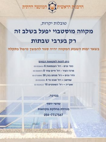 הודעה רשמית לציבור התושבות – פתיחת מקוואות פתח תקווה