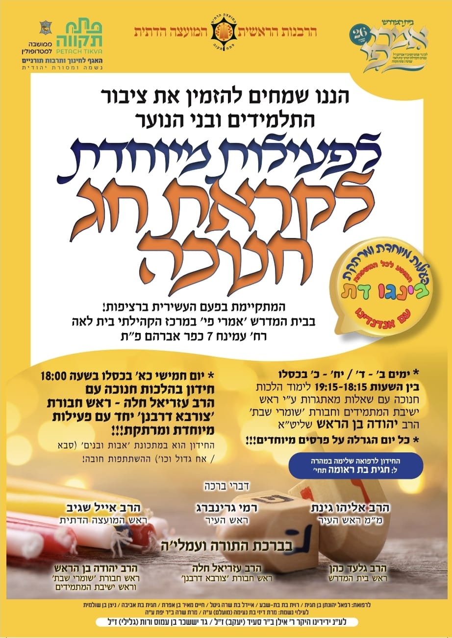 פעילות מיוחדת לקראת חנוכה בבית המדרש אמרי פי